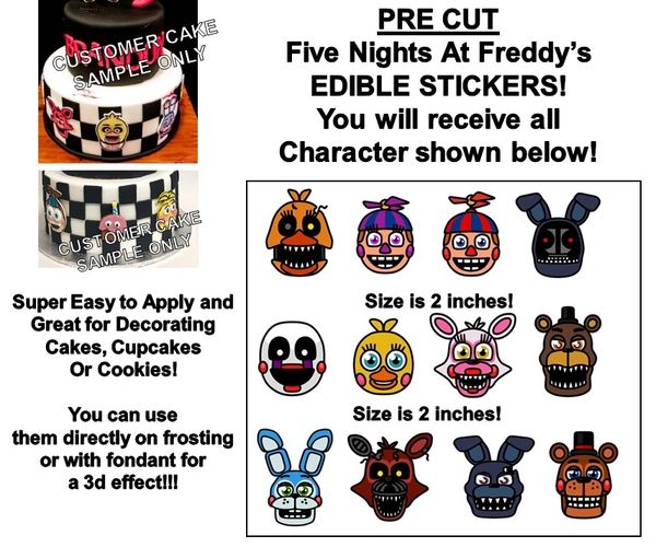 Five Nights At Freddy S Edible Cake Stickers Edible Decal Cut Outs Fnaf Cake Edible Party Images