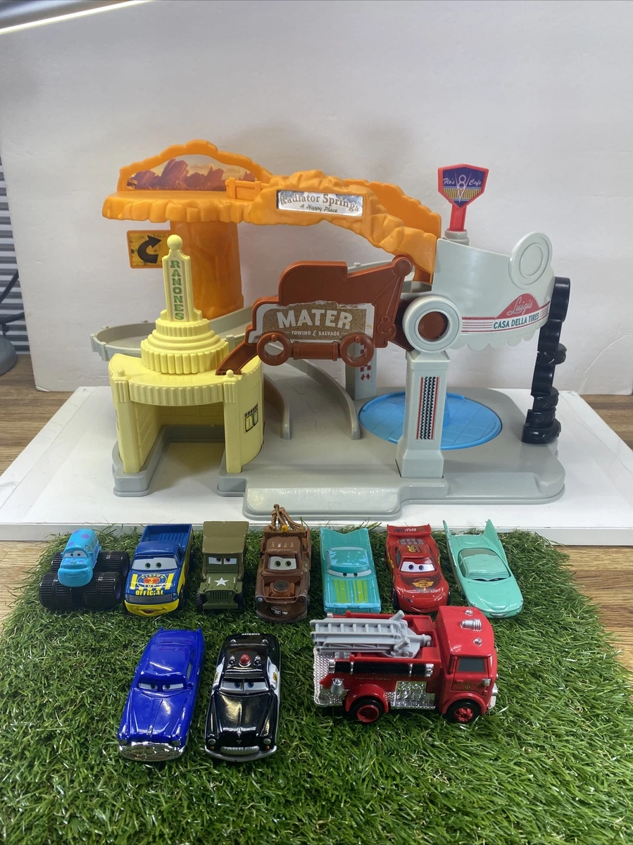 Disney Pixar Wheelies Cars Radiator Springs A Happy Place Tow Mater W 10 Cars Ebay
